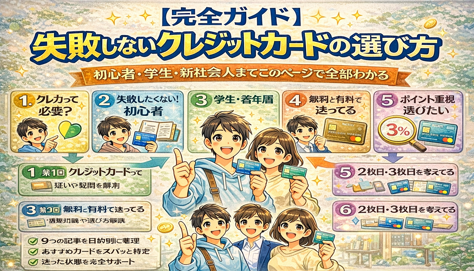 クレジットカード特集シリーズ全9記事を、目的別に整理しました。