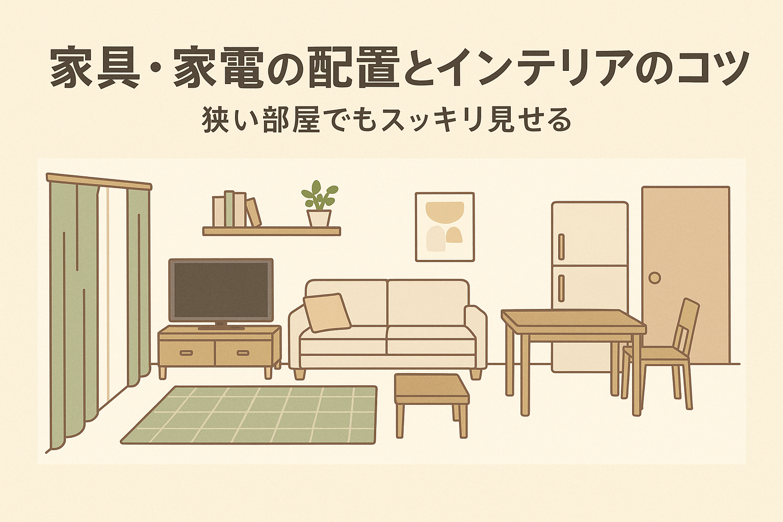 この記事では、狭い部屋をスッキリ見せる家具・家電の配置テクとインテリアのコツを紹介します。