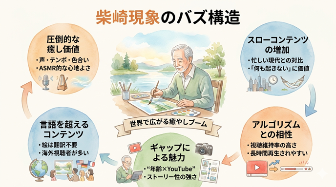 一般的に、SNSでバズるコンテンツといえば、短くてインパクトが強く、感情を一瞬で揺さぶるものが主流です。しかし、この現象はその真逆に位置しています。静かで、ゆっくりで、どこか懐かしい。そんな“真逆の魅力”が、なぜここまで広がったのでしょうか。